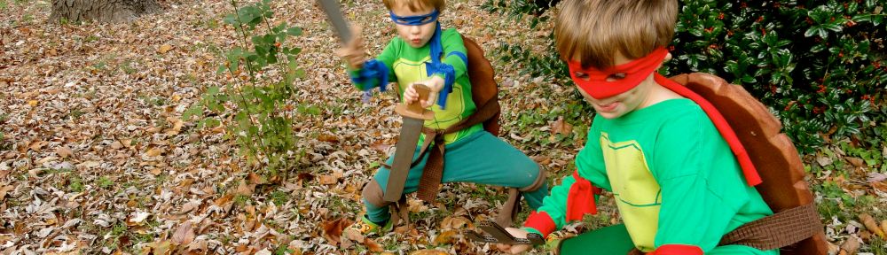 When my youngest kiddo was only a week old we dressed up as a family of chickens and got out into the fray. My newborn chick stayed tucked in his sling while his dad and brother flapped their wings at wizards and monsters.